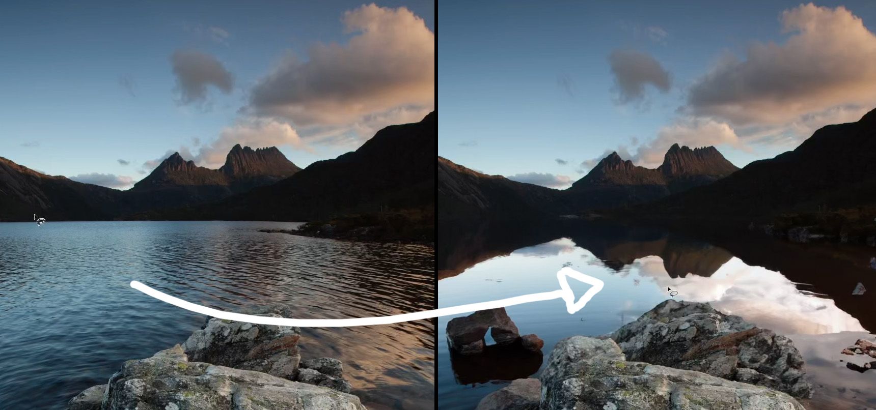 Masterful Manipulation: Learn how to strategically repositioning foreground elements using Photoshop's transformation tools to breathe balance and depth into your landscapes.